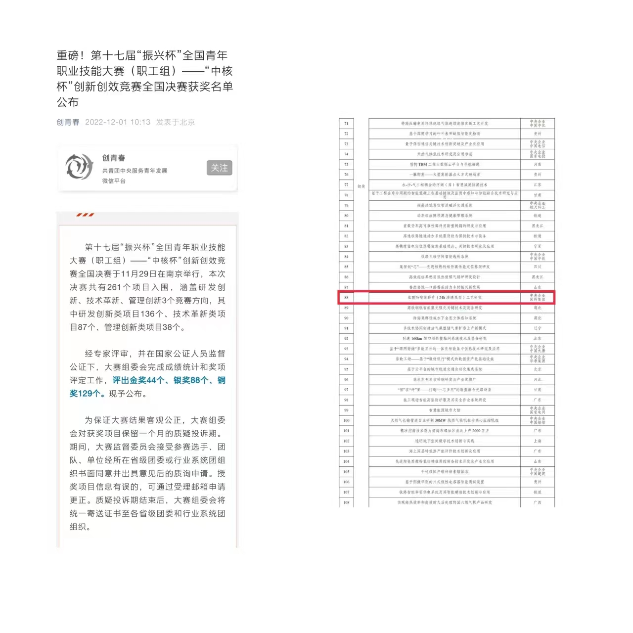 “中(zhong)核杯”創新(xin)創效競賽全國(guo)決賽獲獎